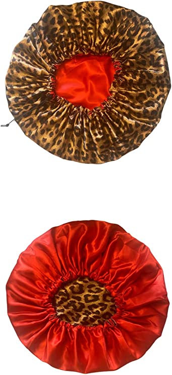 DIMENSION: Jumbo bonnet and adjustable with a drawstring to keep it in place. It fits almost any head size. Perfect for curly natural hair, sew-ins, crochet or braided styles.