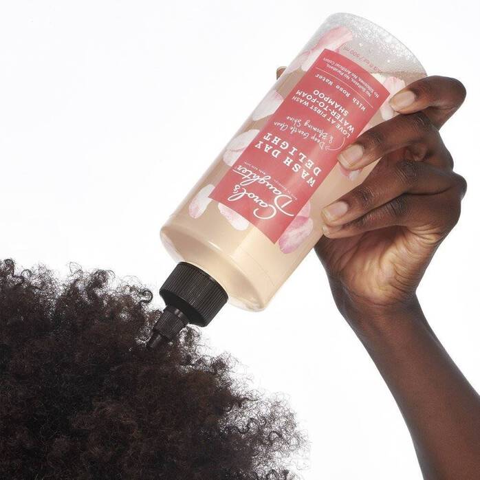Carol's Daughter Wash Day Delight micellar cleansing vegan shampoo with Rose Water transforms from a water to a gentle foam lather for a deep clean without stripping or harsh friction to help cut down time on wash day. Perfect for natural, curly, kinky and coily hair, our targeted applicator helps the liquid formula instantly flow through hair providing easy scalp access and quickly rinses clean. This sulfate free shampoo for naturally curly hair transforms from a liquid into a gentle foam lather without harsh friction and effortlessly works throughout minimizing tangles. This sulfate free shampoo with micellar technology acts like a magnet to attract and lift away buildup for a thorough hair and scalp cleanse without stripping hair. Best when paired with Wash Day Delight Conditioner. 98 percent naturally-derived ingredients*, blended with Rose Water, sulfate free, silicone free, paraben free, no artificial colors, vegan formula**.